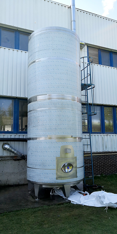 Nerezové nádrže a nádrže z uhlíkaté oceli se tepelně izolují materiály z minerálního vlákna, polystyrenem nebo se polepují kaučukovými pláty a jsou oplechované hliníkovým, pozinkovaným nebo nerezovým plechem.