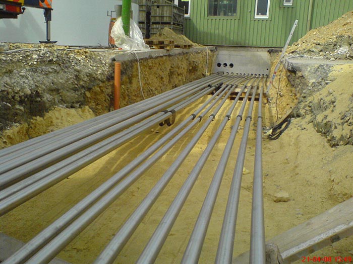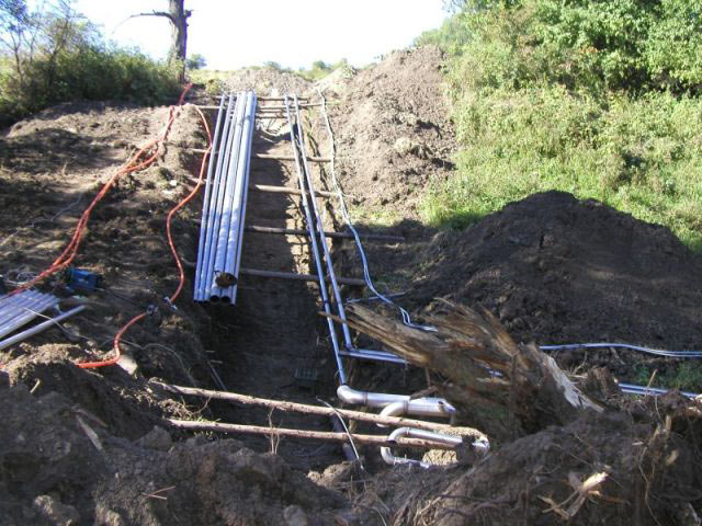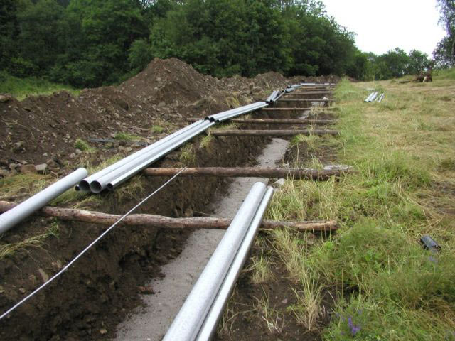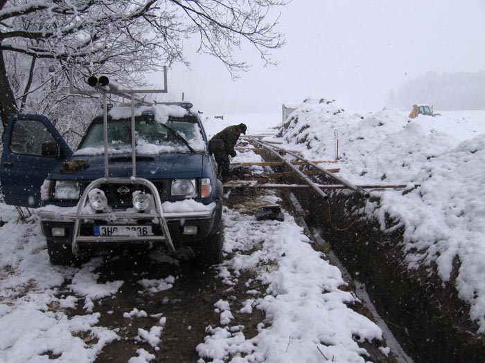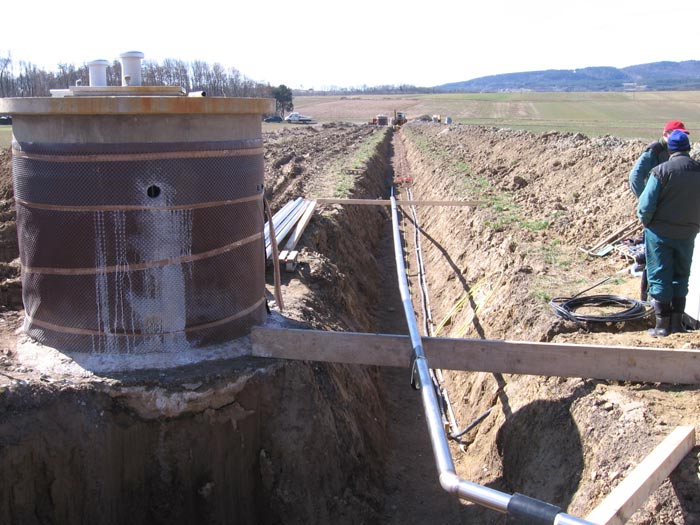 Provádíme montáž a svařování potrubních přivaděčů na minerální vody. Na svarové spoje jsou před pokládkou a zasypáním navlečeny speciální smršťovací ochranné návleky.