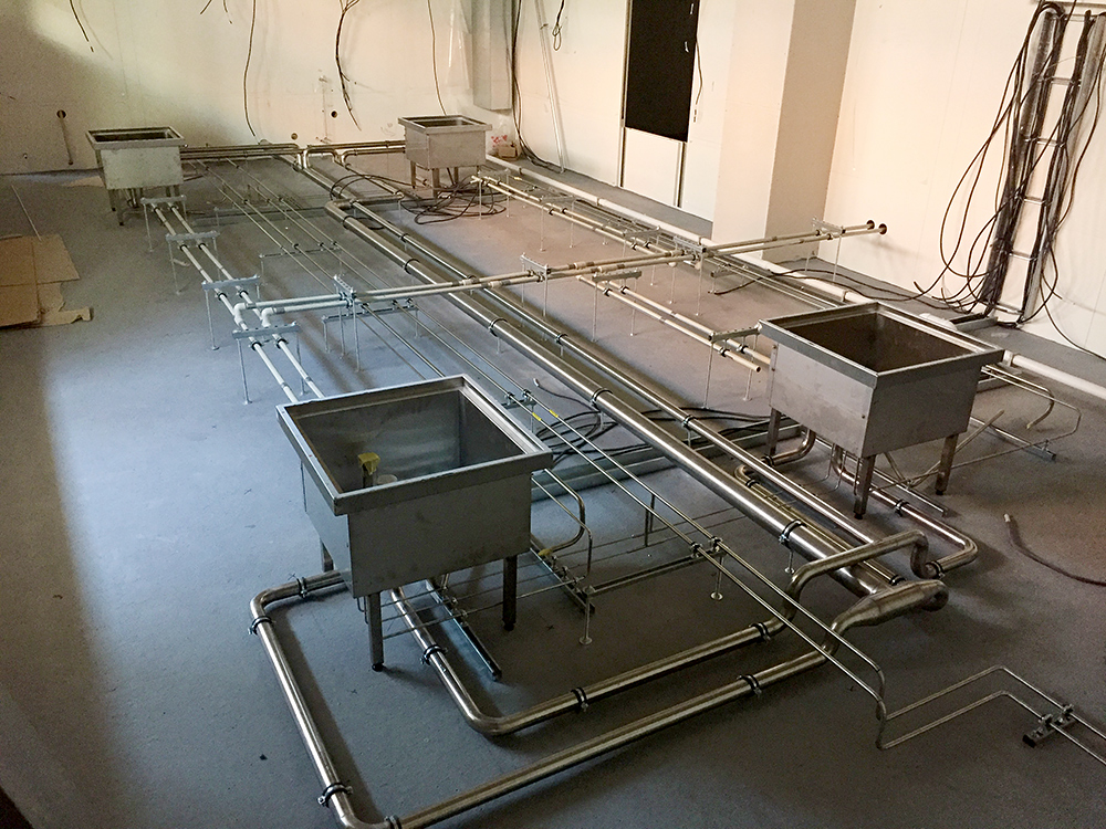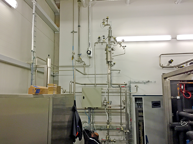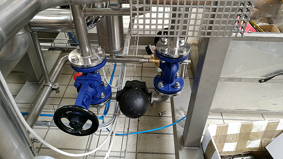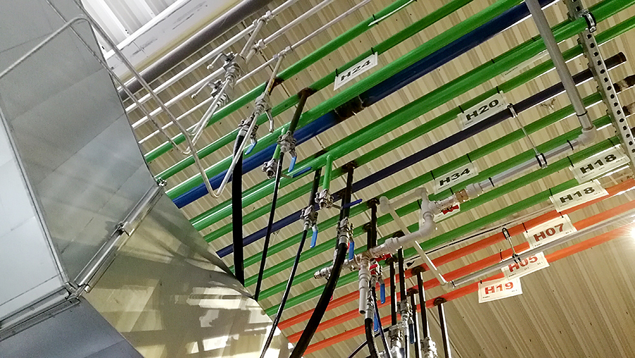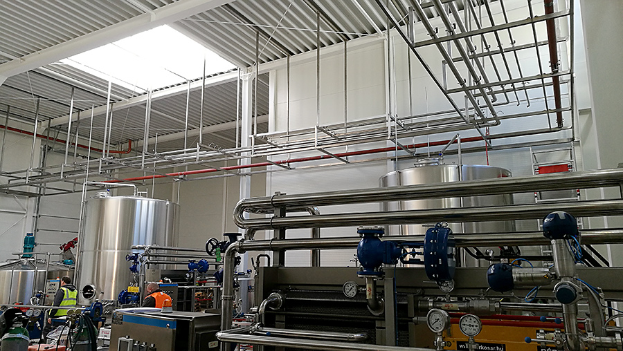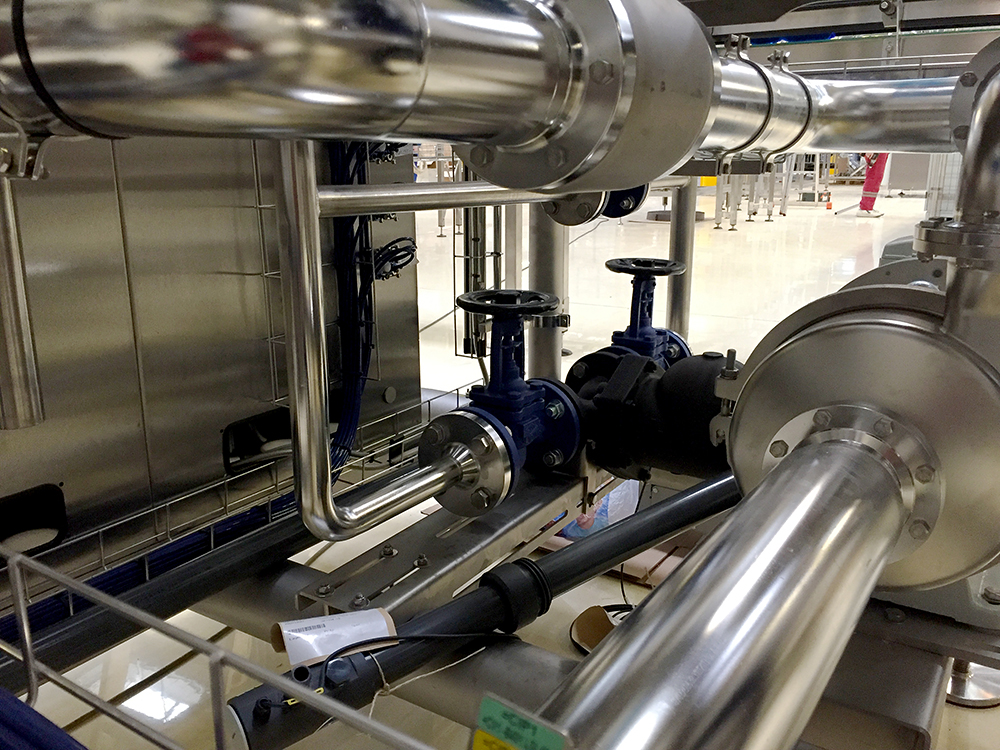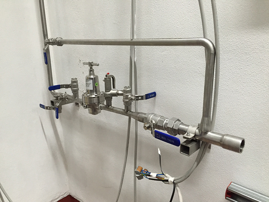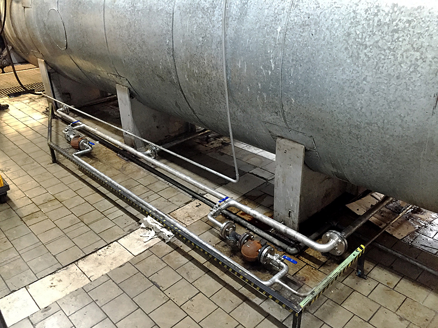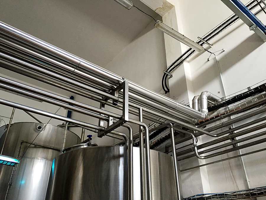 Nerezové potrubní rozvody DN32 od tanků k plnící lince.