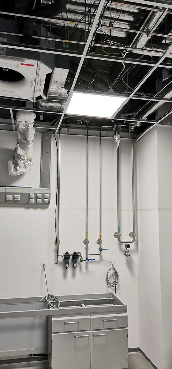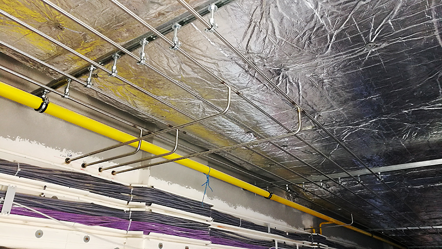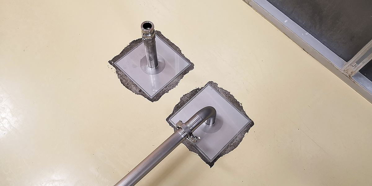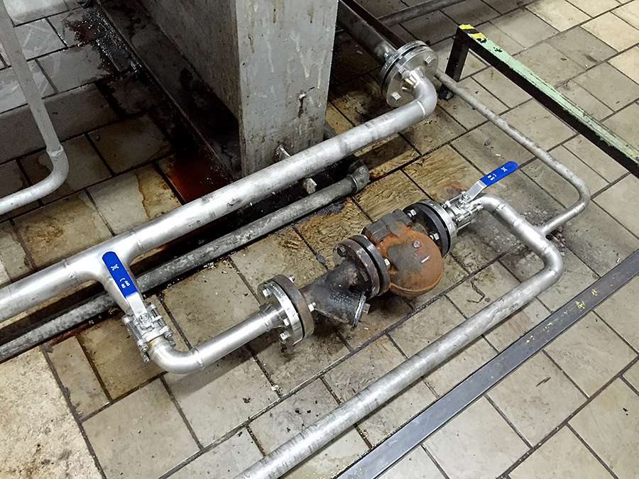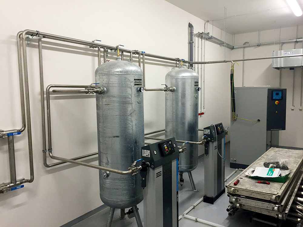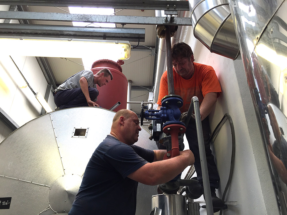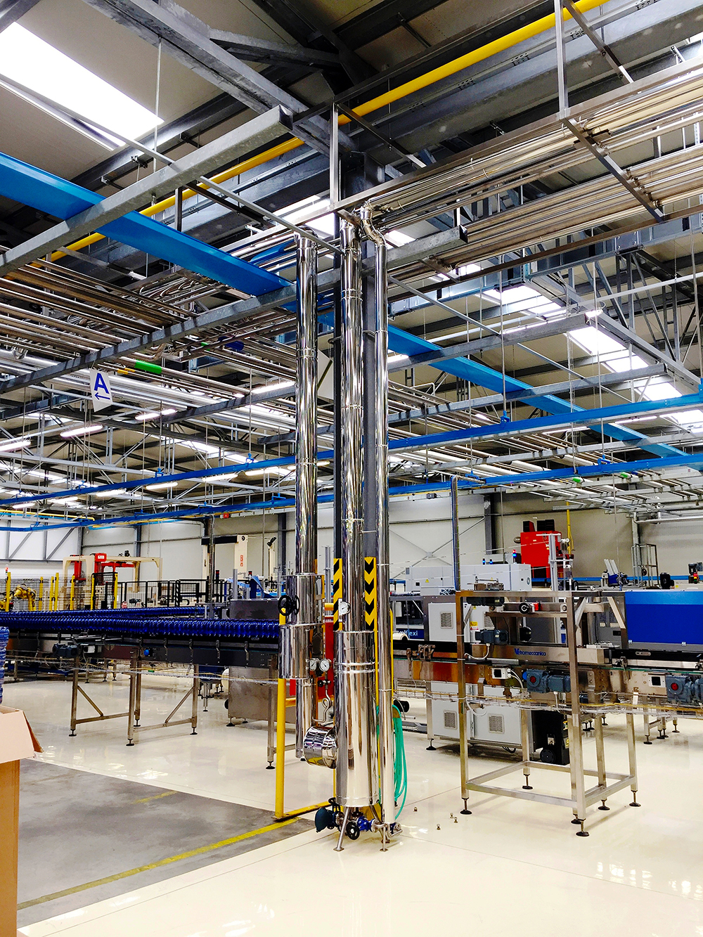 Nerezové potrubní rozvody DN32 od tanků k plnící lince.