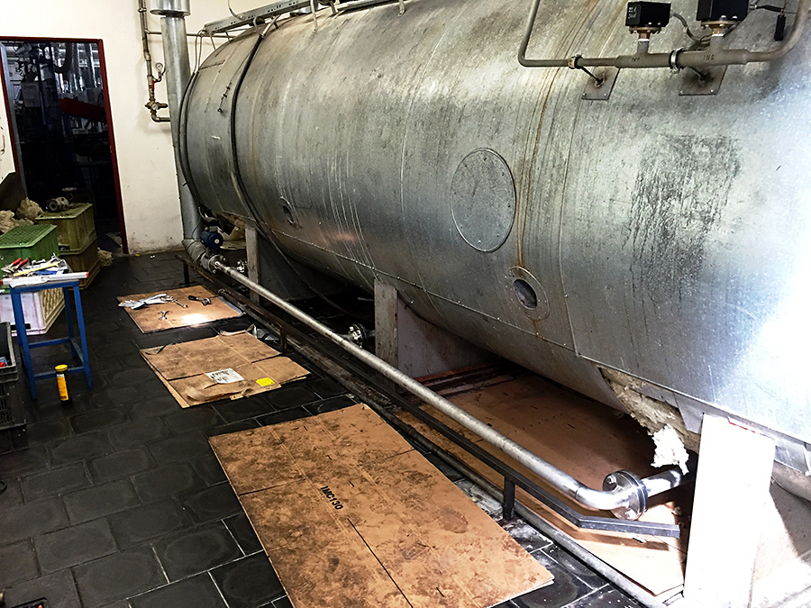 Demontáž kondenzačního potrubí a kalníků Autoklávy K5, montáž nového nerezového kondenzačního potrubí DN15 – DN50, provedení tlakové zkoušky a následná kompletace potrubních dílů a připojení na Autoklávu K5.