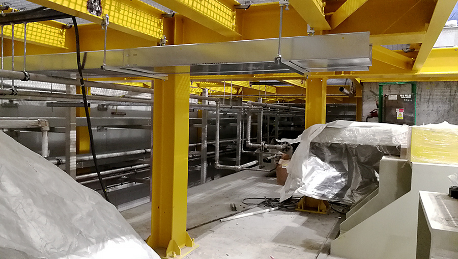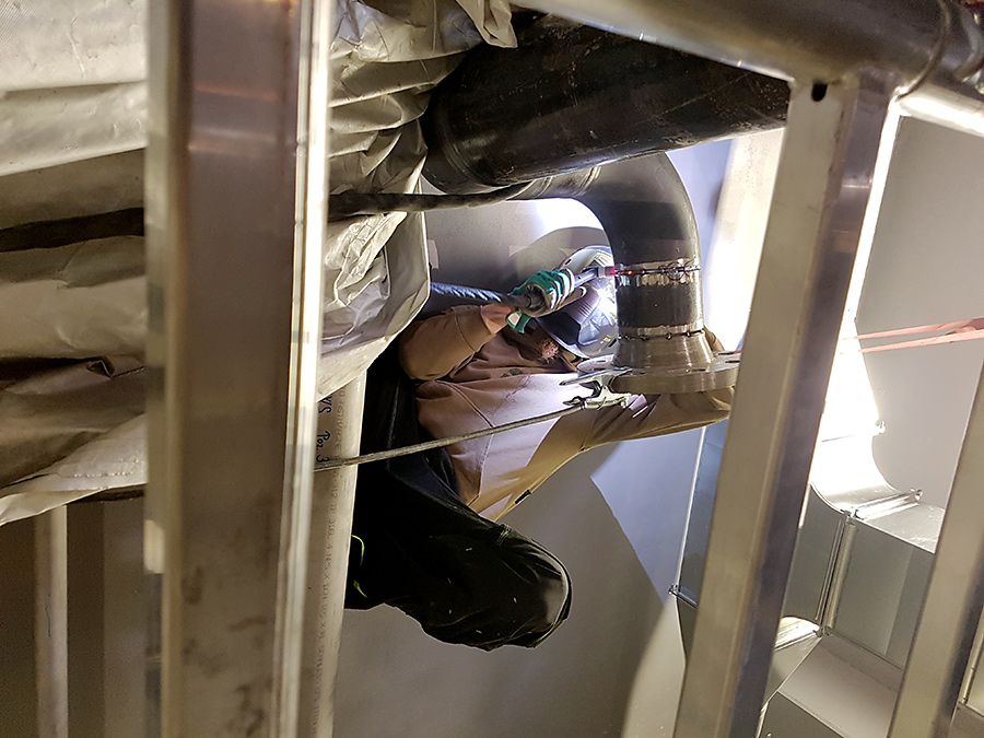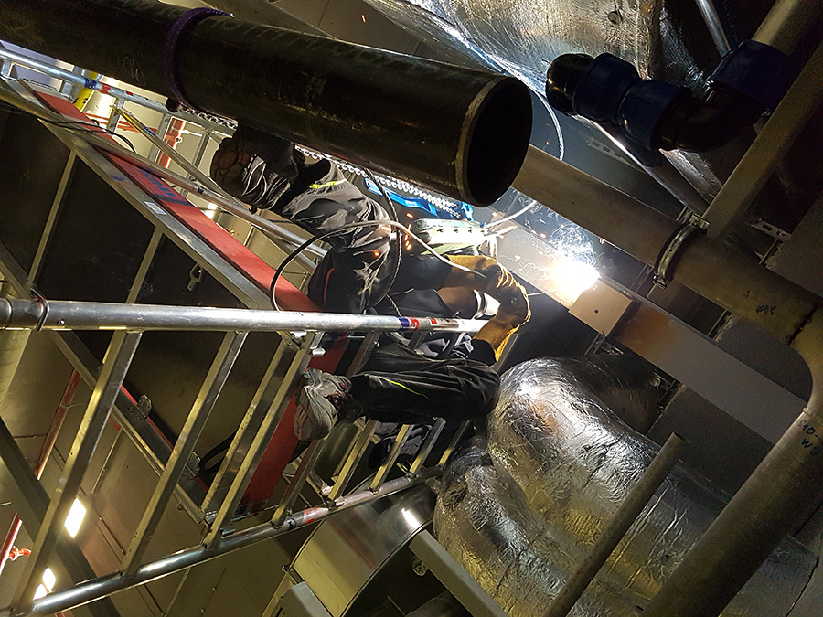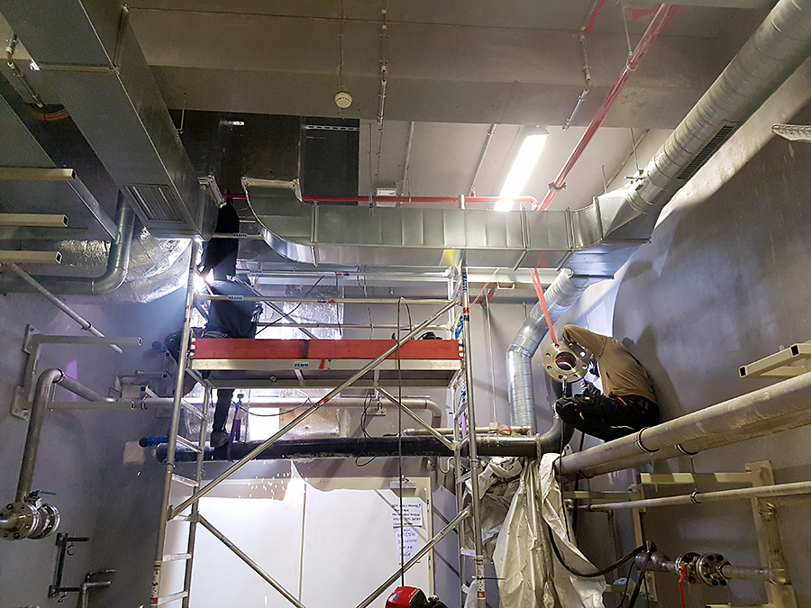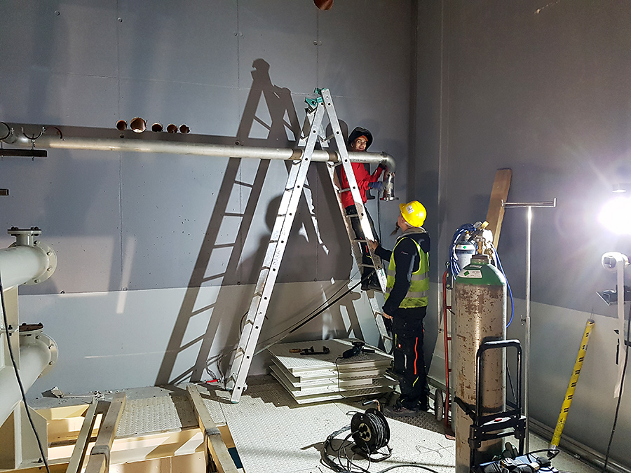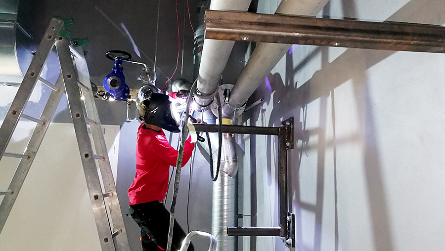 Montáž ocelové konstrukce pro uchycení částí technologického zařízení, montáž částí technologického zařízení, stěhování a usazení technologických zařízení, přípravné práce pro zahájení potrubářských prací na potrubí DN10 – DN250.