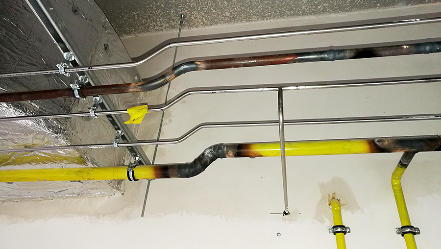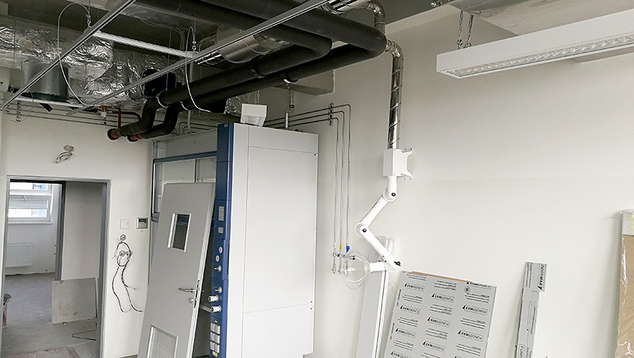 Rekonstrukce objektu laboratorní technologie. Montáž nerezových potrubních rozvodů technických a speciálních plynů DN8.