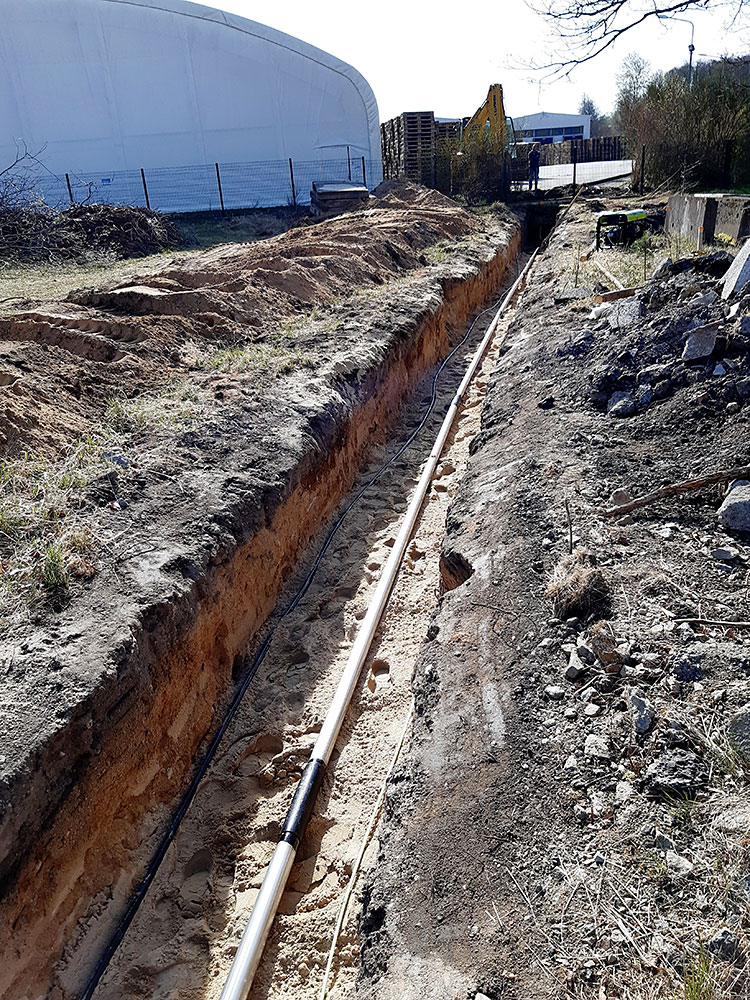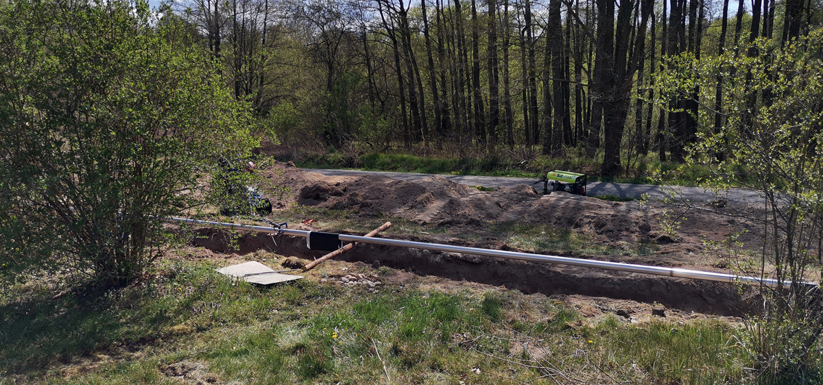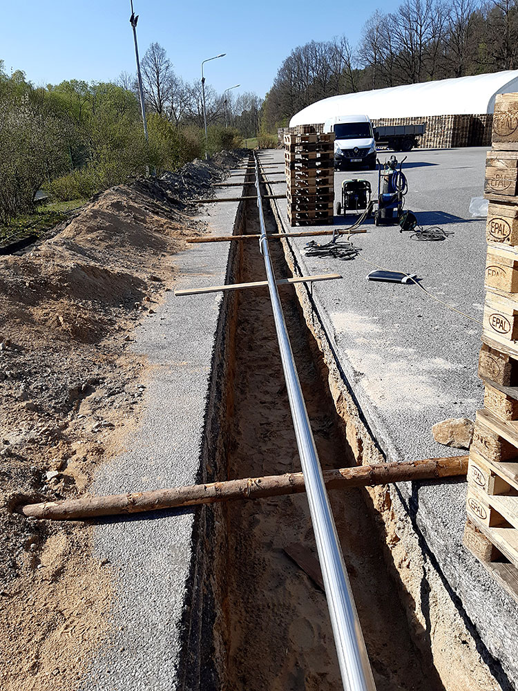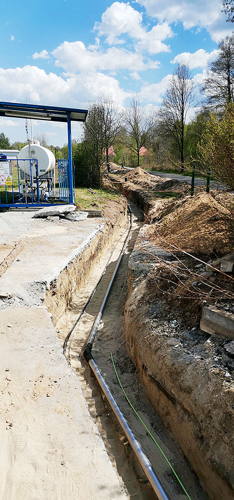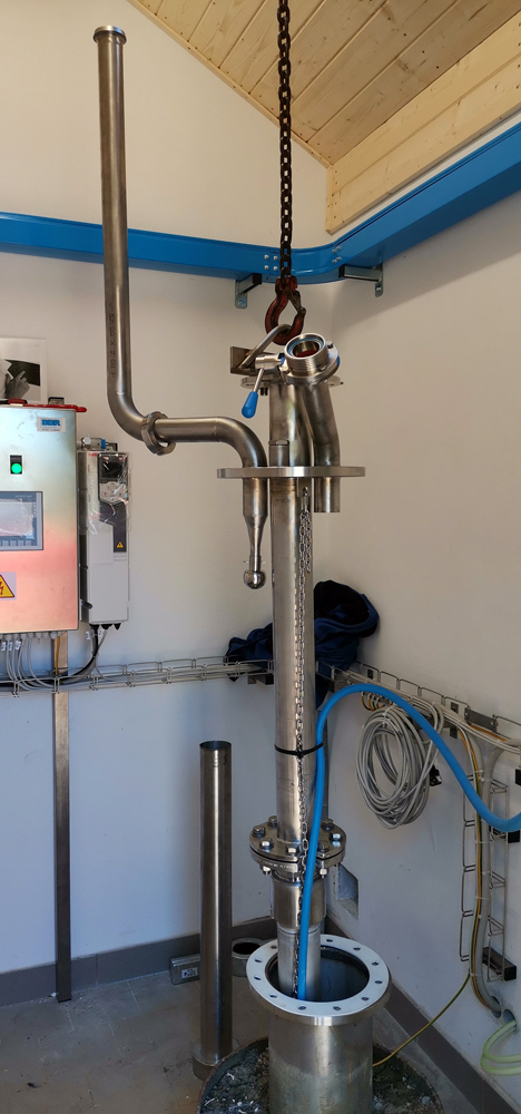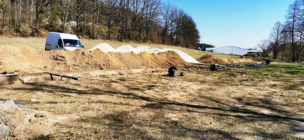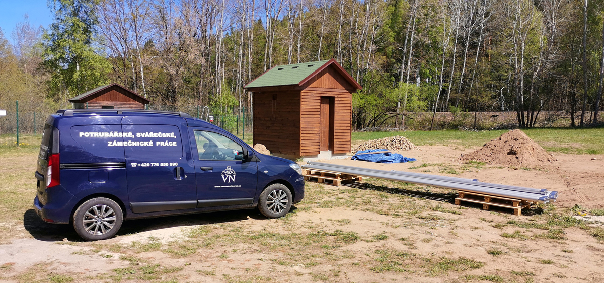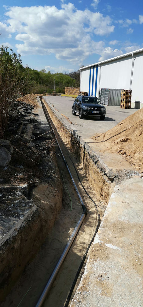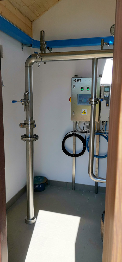 Výstavba strojovny vrtu HV8 + vystrojení vrtu (čerpadlo, čerpací tyče DN80), potrubní napaječ DN80 ze strojovny vrtu do výrobního závodu v délce 500 m.