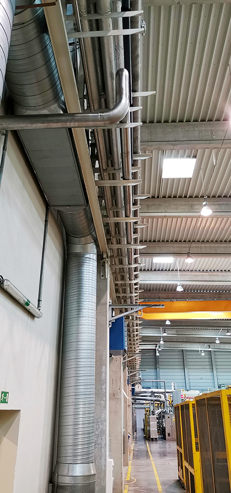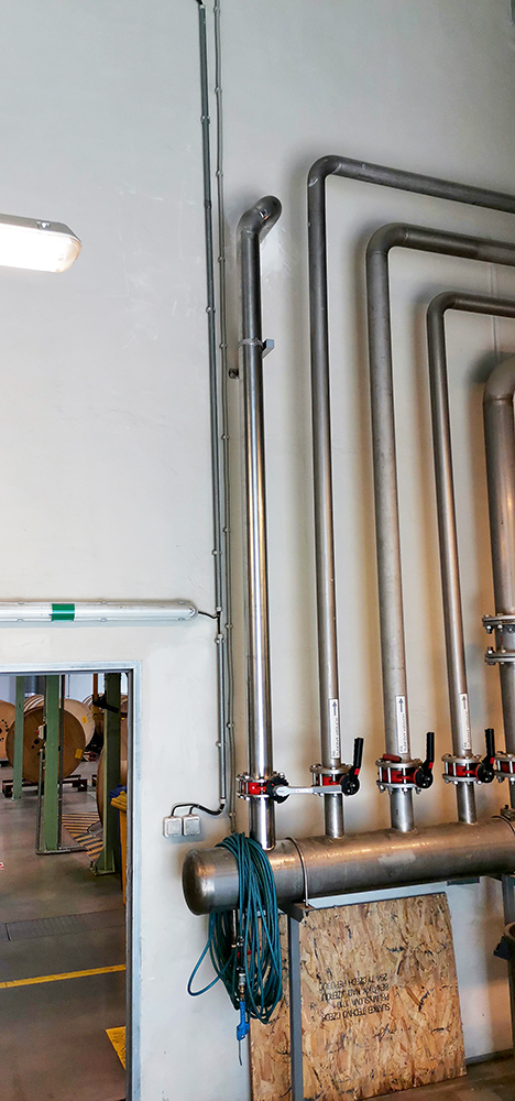 Montáž potrubí na vzduch DN100 pro ovládání oplachu tunelu.